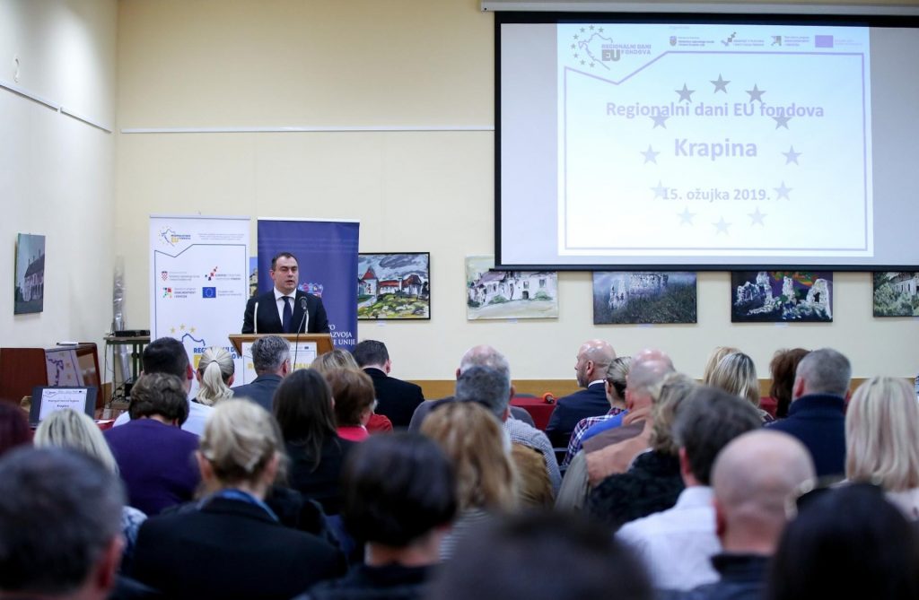 Besplatne edukacije namijenjene svim građanima zainteresiranima za mogućnosti korištenja EU fondova održale su se 15. ožujka 2019. u Maloj dvorani Pučkog otvorenog učilišta Krapina (Šetalište Hrvatskog narodnog preporoda 13). Događaj su pozdravnim govorima otvorili g. Zoran Gregurović, gradonačelnik Krapine, i g. Velimir Žunac, državni tajnik u Ministarstvu regionalnoga razvoja i fondova Europske unije. Po završetku uvodnih govora održala se panel diskusija „Razvoj Krapine kroz fondove Europske unije“ na kojoj su sudjelovali Zoran Gregurović, gradonačelnik Krapine, Vlatka Mlakar, pročelnica Upravnog odjela za javnu nabavu i EU fondove, Mario Škrlec, vlasnik farme pilića „Škrlec“, Vesna Pleško, vlasnica trgovine „OMP obrada metala“ i Grozdana Pavlović, ravnateljica Pučkog otvorenog učilišta Krapina.