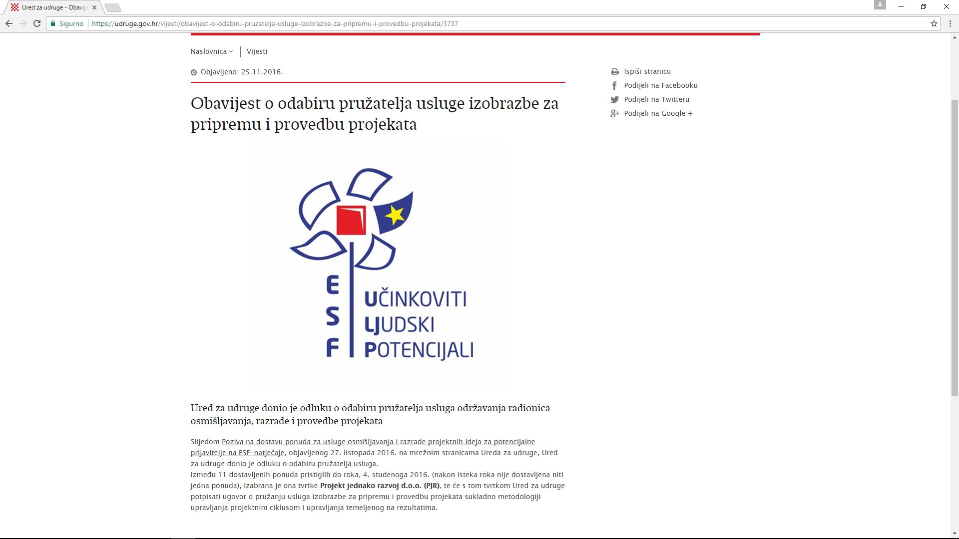 Poziv je objavljen i na mrežnoj stranici Ureda za udruge Vlade RH.