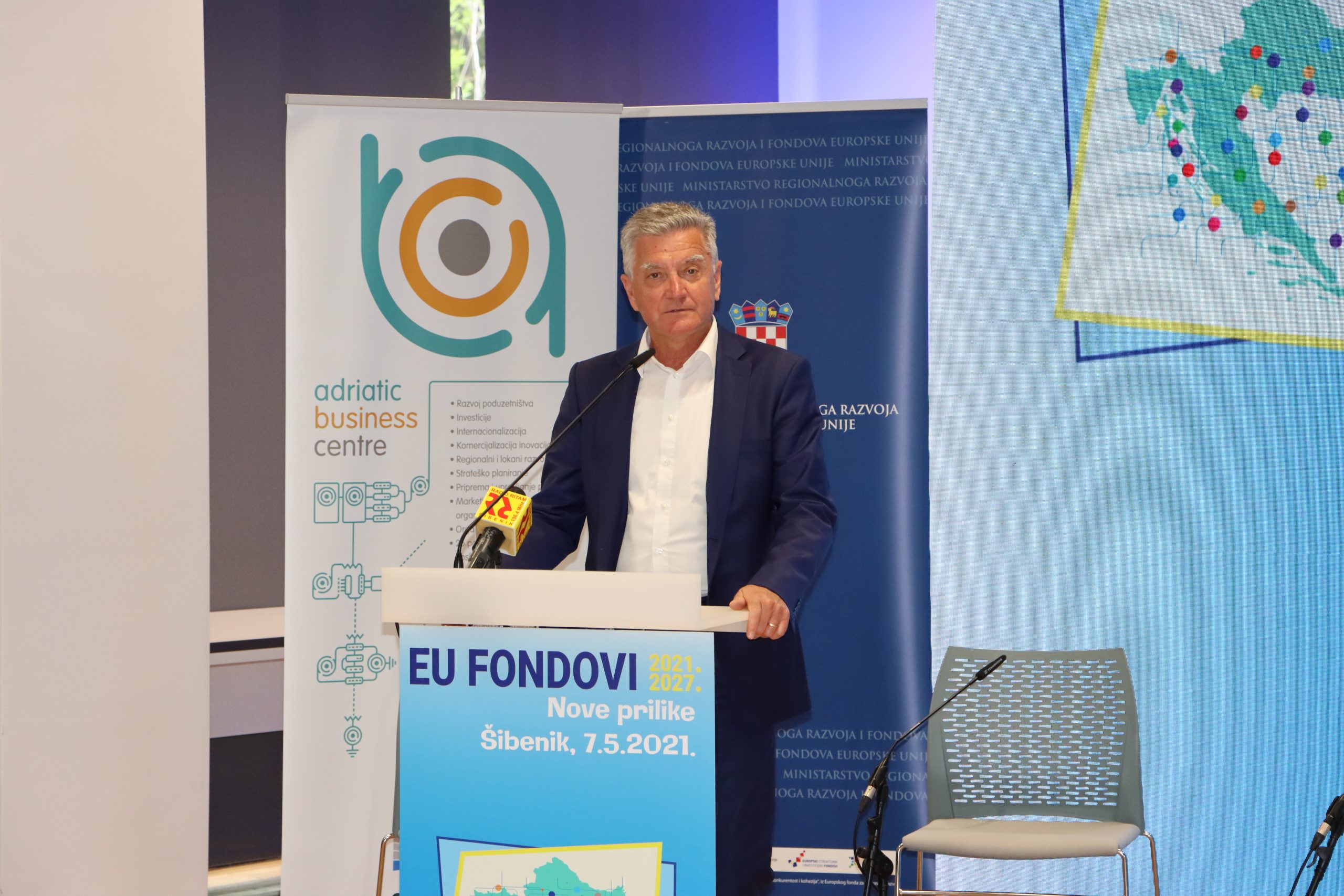 U petak, 7. svibnja 2021. godine, u Šibeniku je, u prostorima Adriatic Business Centra, održano peto po redu informativno-edukativno događanje „EU fondovi 2021.-2027. – Nove prilike“ u organizaciji Ministarstva regionalnoga razvoja i fondova Europske unije. Cilj ovih informativno-edukativnih događanja je informirati zainteresiranu javnost o mogućnostima financiranja projekata sredstvima EU fondova iz nove financijske perspektive 2021.-2027. te predstaviti tijek pripreme strateških dokumenata koji su preduvjet za korištenje EU fondova u novom financijskom razdoblju.