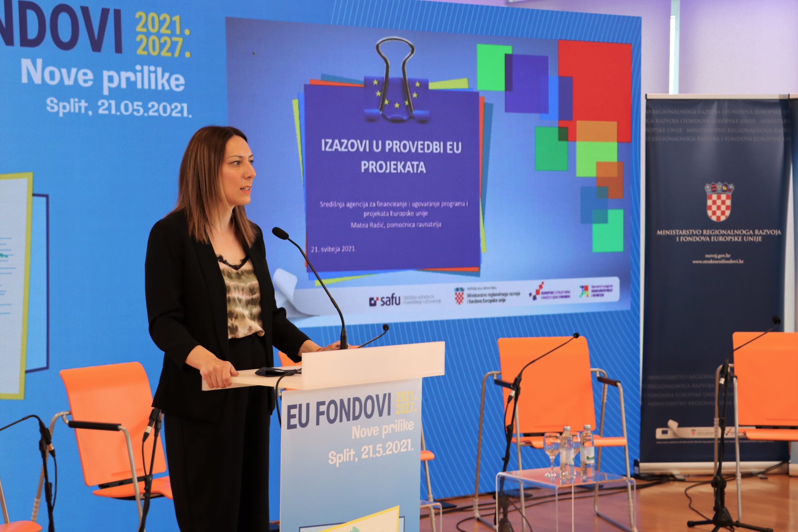 Matea Radić, pomoćnica ravnatelja Središnje agencije za financiranje i ugovaranje programa i projekata Europske unije, u svom se izlaganju osvrnula na brojne izazove u provedbi EU projekata te podijelila iskustva Središnje agencije za financiranje i ugovaranje programa koja su primjenjiva ne samo u provedbi nego zaista i u pripremi projekata.